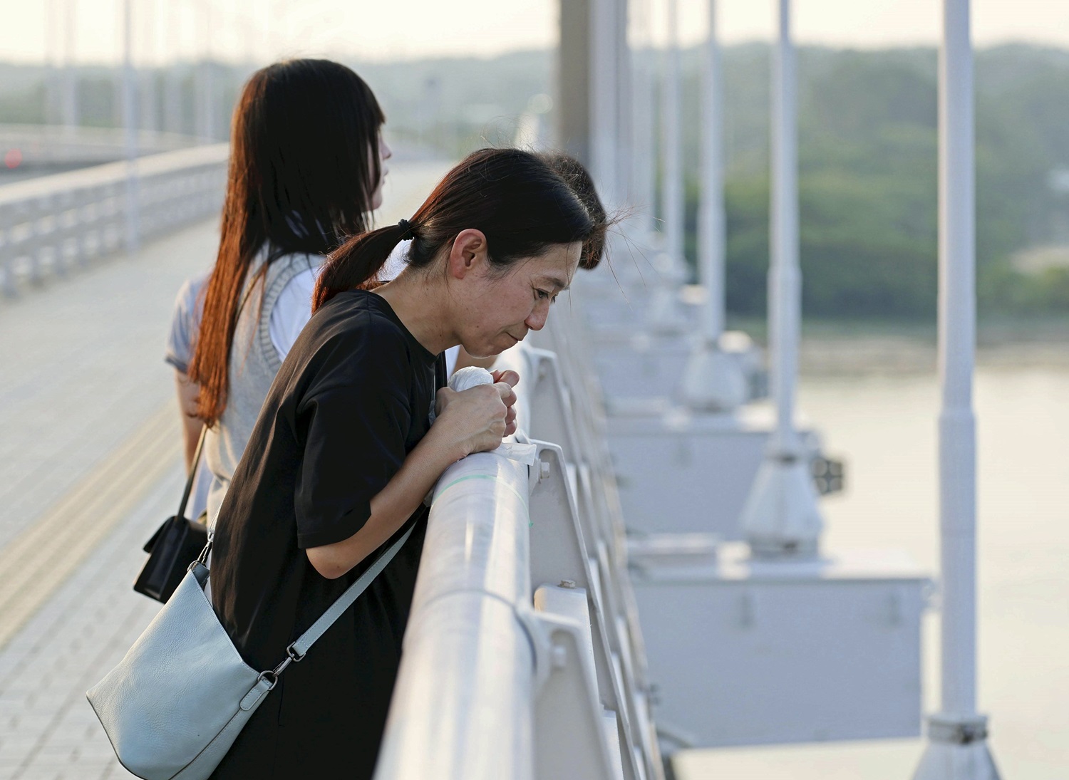 Kaori Ogami, 48, placed a sunflower and prayed for the rest of her children at the accident site, the Umi no Nakamichi Ohashi Bridge on Tuesday.