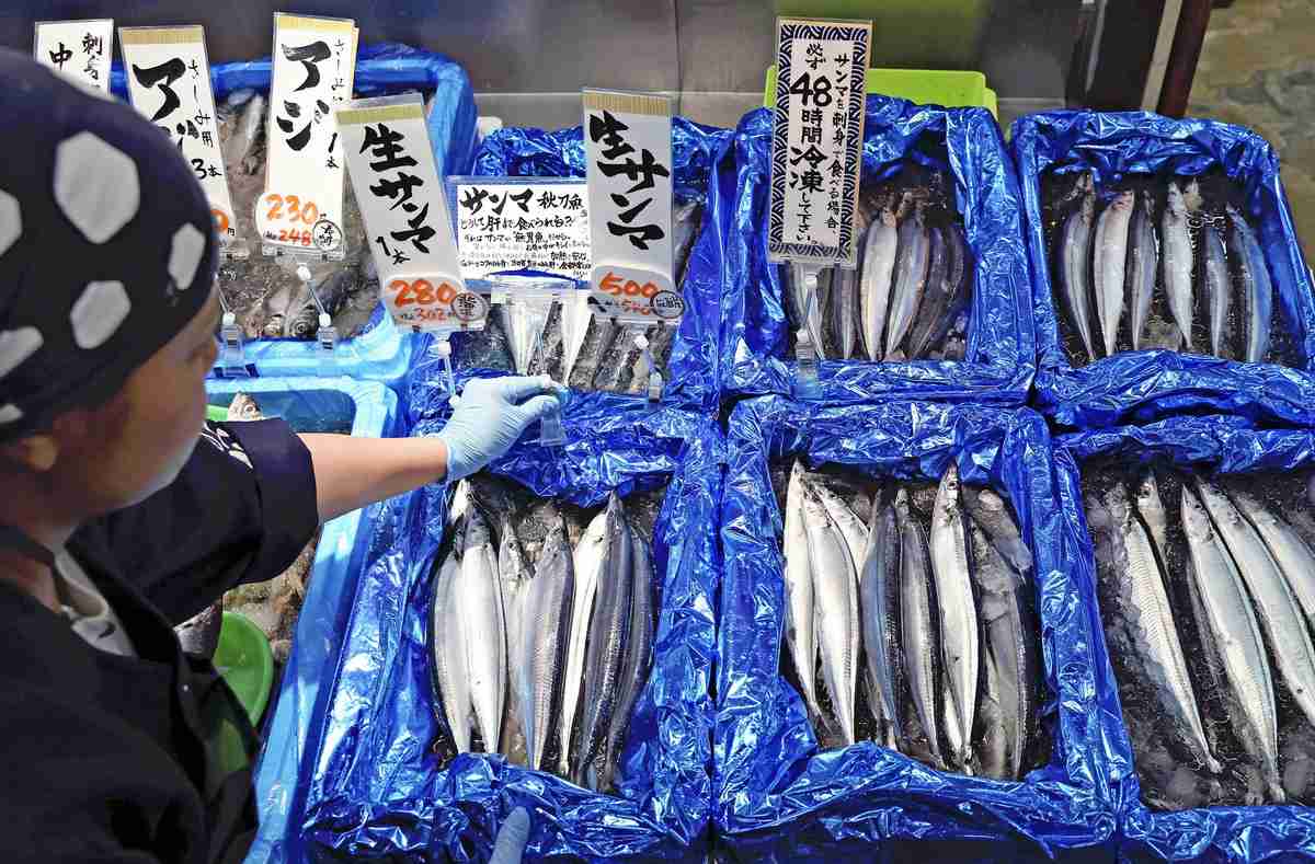 Saury caught off Hokkaido are sold at a shop in Nerima Ward, Tokyo, on Friday.
