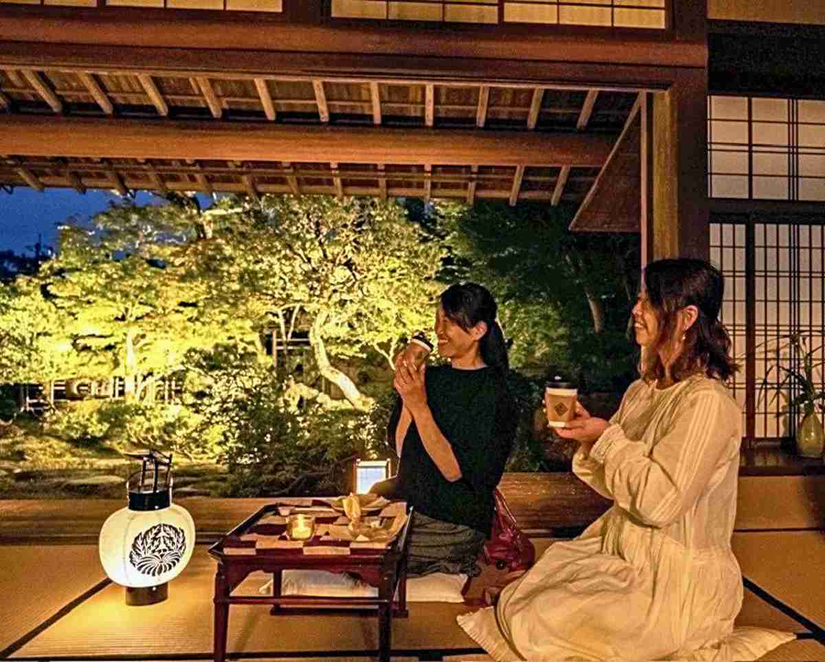 The nationally designated important cultural property Kikuya Residence in Hagi, Yamaguchi Prefecture, serves drinks and sweets at night.