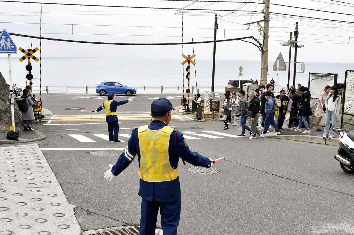 KAMAKURA, Kanagawa — The city of Kamakura, Kanagawa Prefecture, on Saturday launched four-day trial measures through Tuesday to ease crowding at a railway crossing near Kamakura-koko-mae Station on the Enoshima Electric Railway Line.