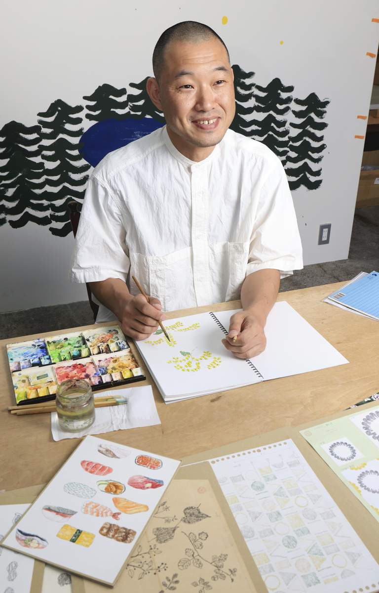 Yoshihisa Iida, the owner of Iida Kasaten, said that his daily sketches are the basis for his fabric motifs.