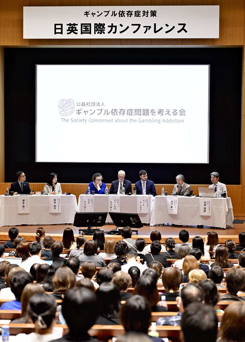 The Japan-U.K. Conference on Gambling Addiction had about 500 participants from Japan and Britain, including experts and surviving family members of suicide victims whose deaths were related to gambling addiction.