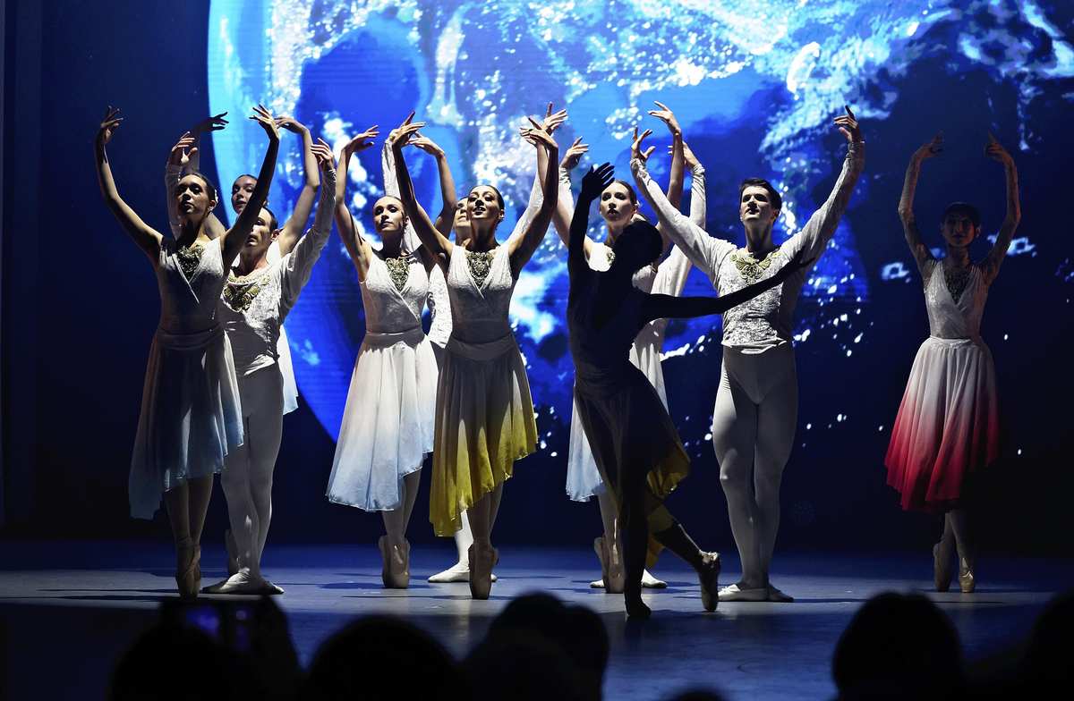 Dancers of the Awaji World Ballet perform at the 2025 Osaka-Kansai Expo in Osaka on Friday.