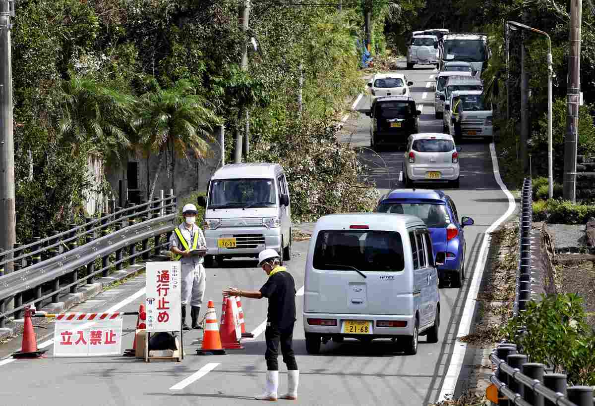 HACHIJO, Tokyo — Two powerful typhoons, Halong and Nakri, or Typhoons No. 22 and 23, struck Hachijojima Island in quick succession last week, causing severe damage including a landslide in the island’s southeastern Sueyoshi district and the collapse of a municipal road. Water and power outages persist, and evacuation orders remain in effect for all of the district’s roughly 230 residents. Locals who returned home temporarily for the first time on Tuesday expressed a heartfelt desire to “return to daily life soon.”