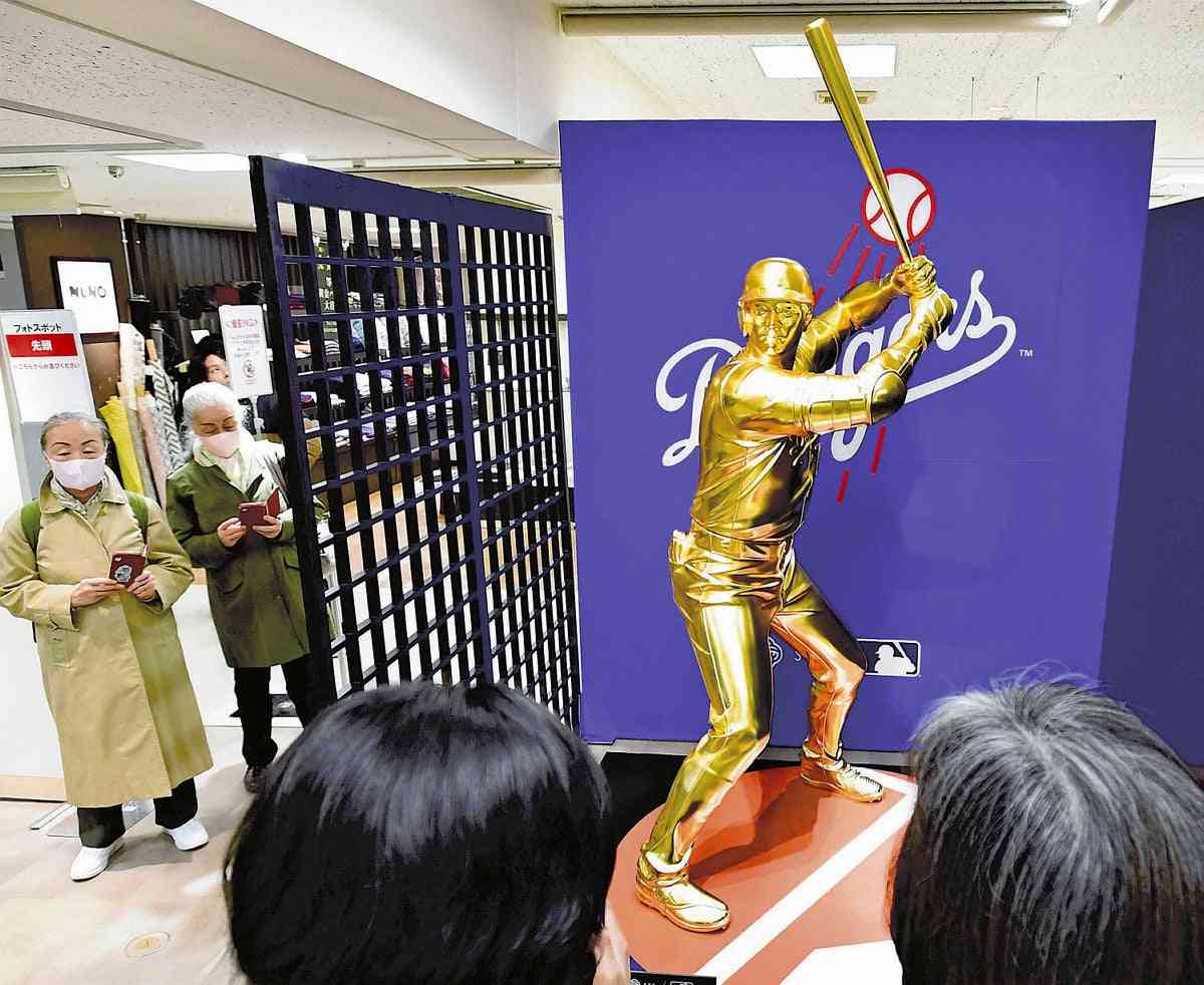 SAPPORO — A life-size golden statue of the Los Angeles Dodgers’ Shohei Ohtani is on display at Sapporo Mitsukoshi in Sapporo.