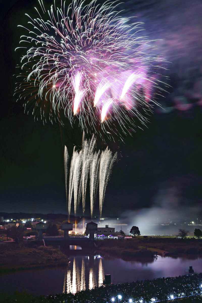 Fireworks paint the night sky in bright colors at the Tsuchiura All Japan Fireworks Competition in Tsuchiura, Ibaraki Prefecture, on Saturday.