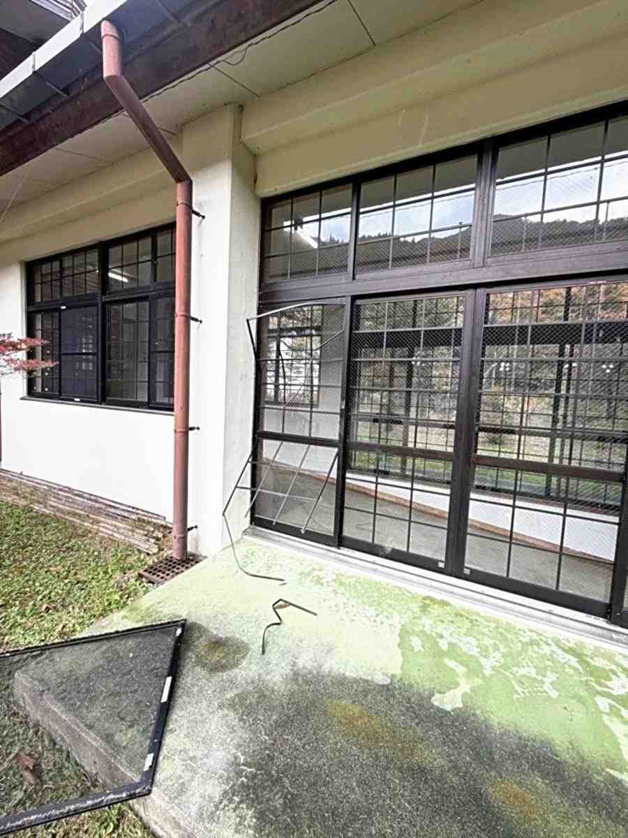 SHIOJIRI, Nagano — A teacher found a damaged window frame in the connecting corridor of Narakawa Elementary/Junior High School in Shiojiri, Nagano Prefecture, around 8 a.m. on Monday.