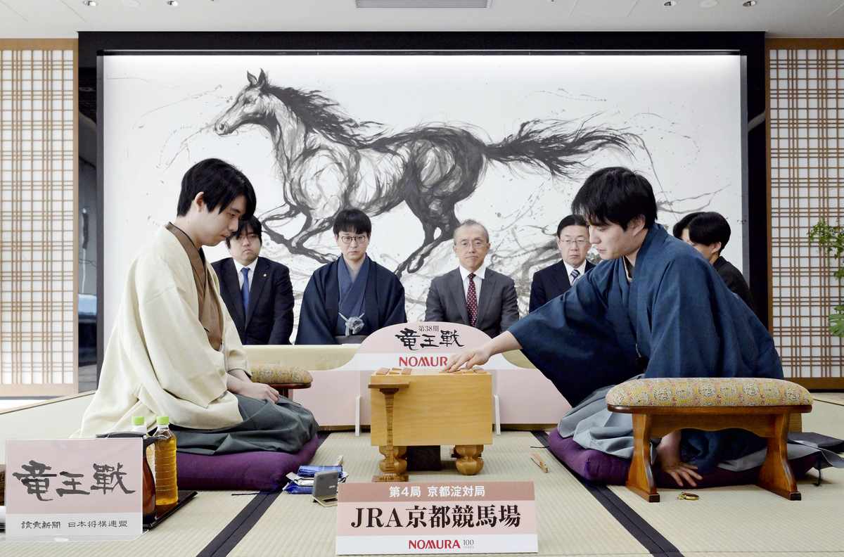 KYOTO — The fourth match of the best-of-seven Ryuo title series began at Kyoto Racecourse in Kyoto City on Wednesday, as shogi prodigy Sota Fujii seeks to defend his title.
