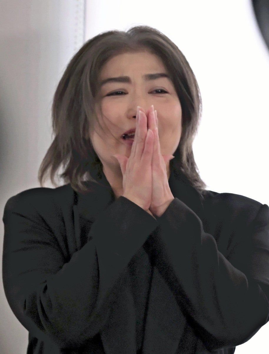 Maki Takubo, then mayor of Ito, is seen in tears after a motion of no confidence was passed at an extraordinary city council meeting on Oct. 31 in Ito, Shizuoka Prefecture.
