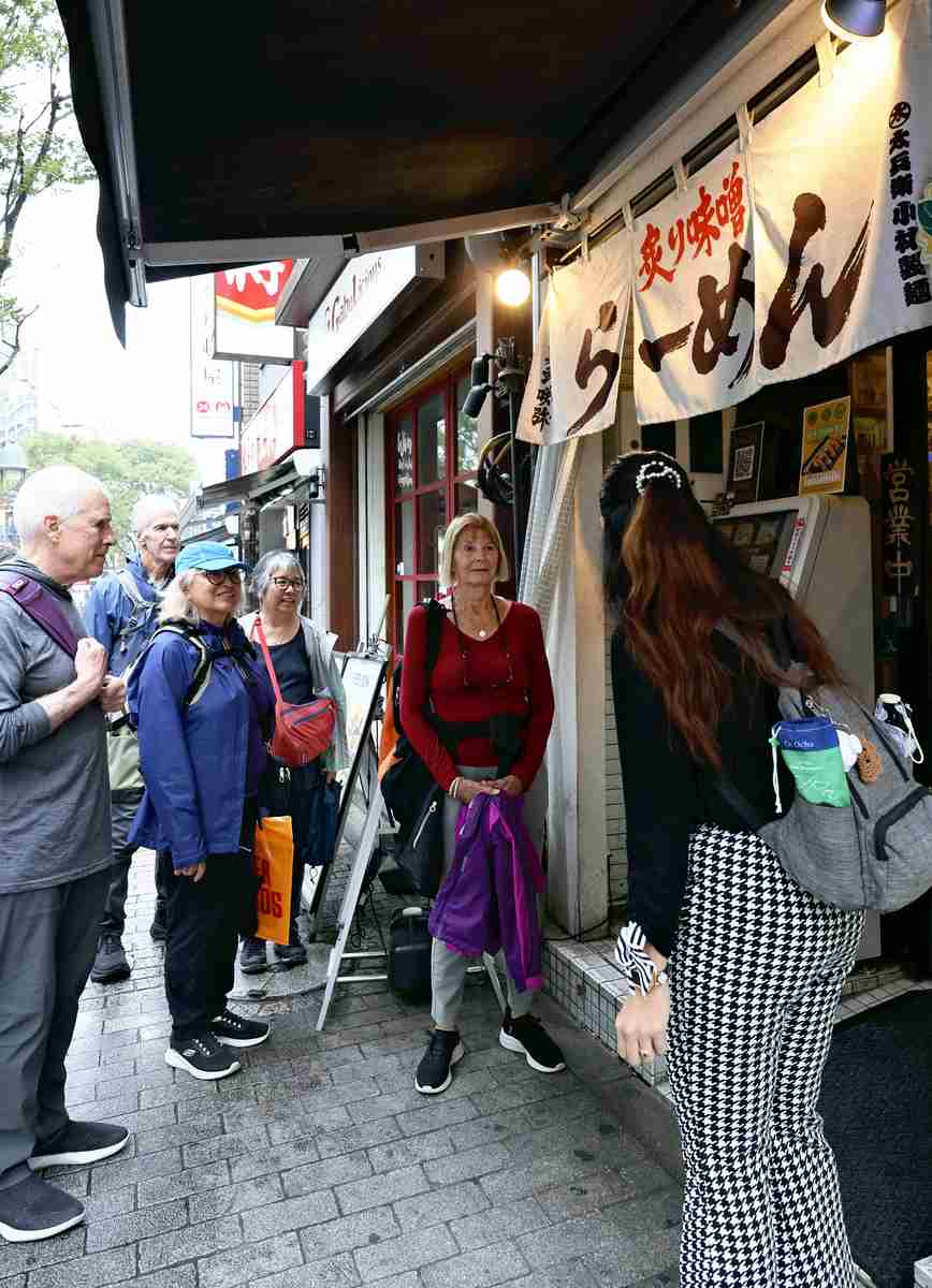 Seven American tourists were speaking excitedly about what kind of ramen they would get. It was past noon in mid-October and they were standing in front of a miso ramen restaurant in Shibuya Ward, Tokyo.
