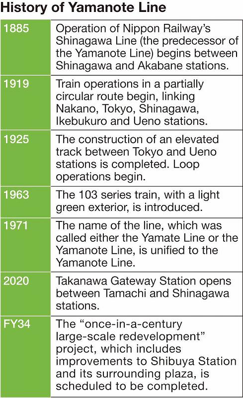 The Yamanote Line in November marked 100 years of operations as a loop line.