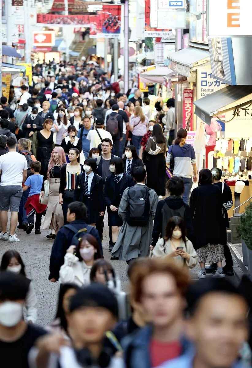 Many foreign nationals are seen at Takeshita-dori street in the Harajuku area of Tokyo.