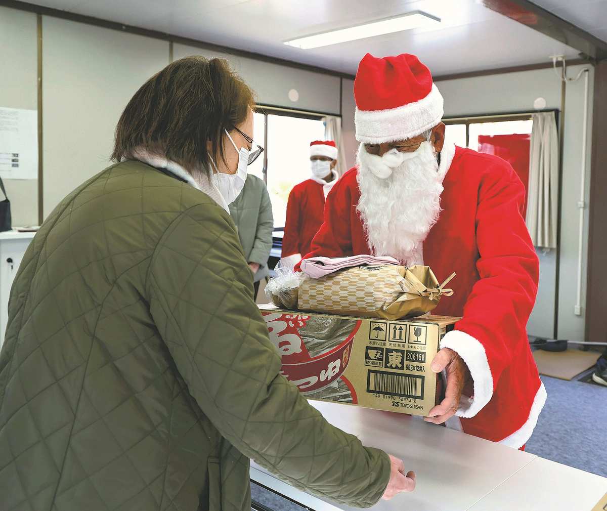 OFUNATO, Iwate — Three volunteers dressed as Santa Claus handed out gifts to those displaced by the massive forest fire that broke out in Ofunato, Iwate Prefecture, earlier this year.