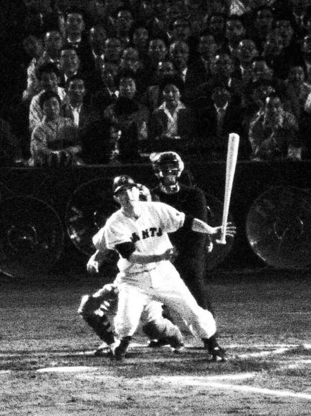 Yomiuri Giants player Shigeo Nagashima hits a walk-off home run in a game attended by the then Emperor and Empress on June 25, 1959, at Korakuen Stadium in Tokyo.