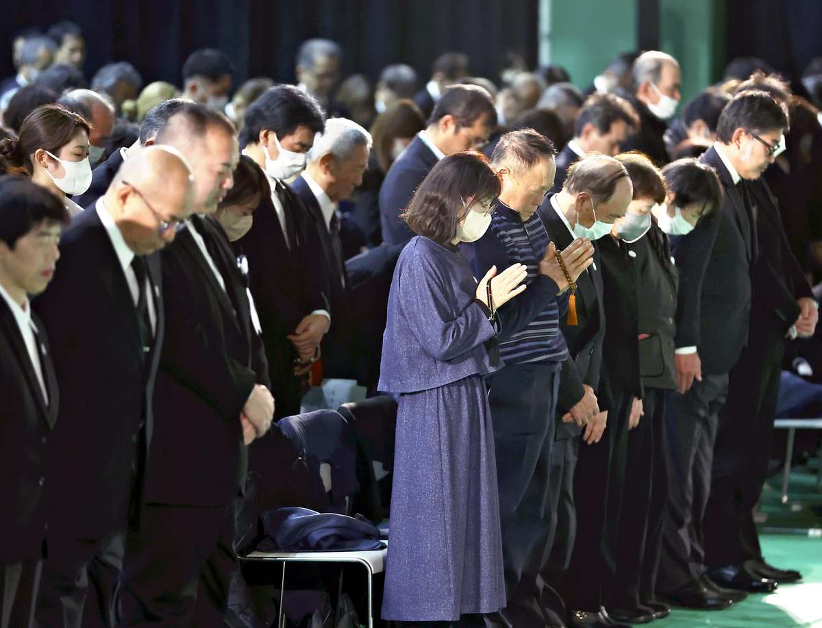 At the ceremony hosted by the prefecture, 337 people — including bereaved family members of people who died in torrential rains that hit the prefecture later that year — observed a moment of silence.