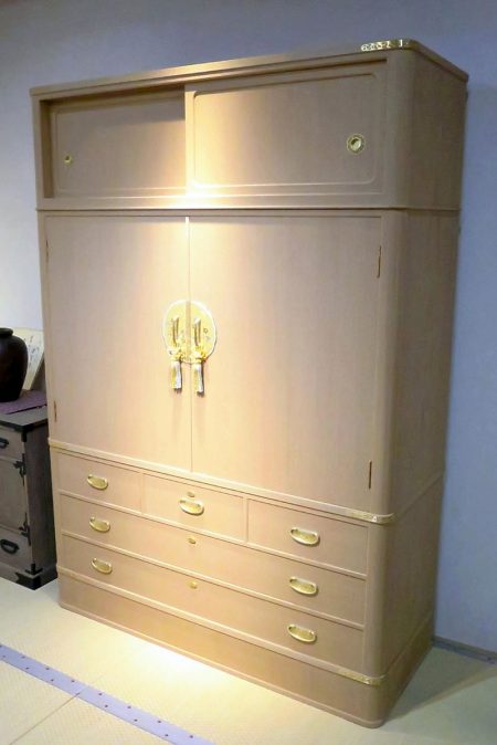 Chests made with white solid paulownia were especially valued as part of a bridal trousseau. Since the Meiji era (1868-1912), sales expanded mainly in the Kansai region due to the development of transportation networks. In the 1980s, about 100 companies were involved in producing Kishu chests of drawers.