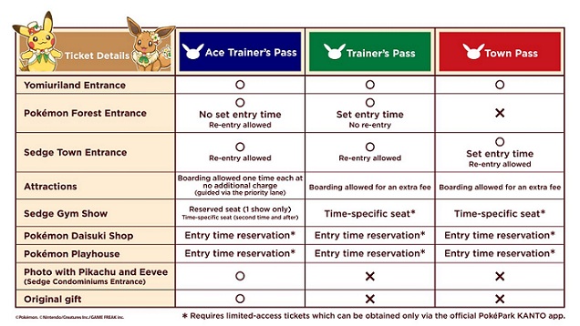 When buying PokéPark KANTO tickets, you are given a choice between three types. Each includes admission to the Yomiuriland amusement park, which straddles Inagi, Tokyo, and Kawasaki.