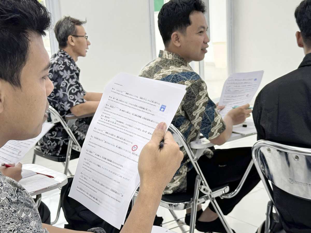Indonesian trainees learn Japan’s traffic rules in Japanese in Karanganyar.