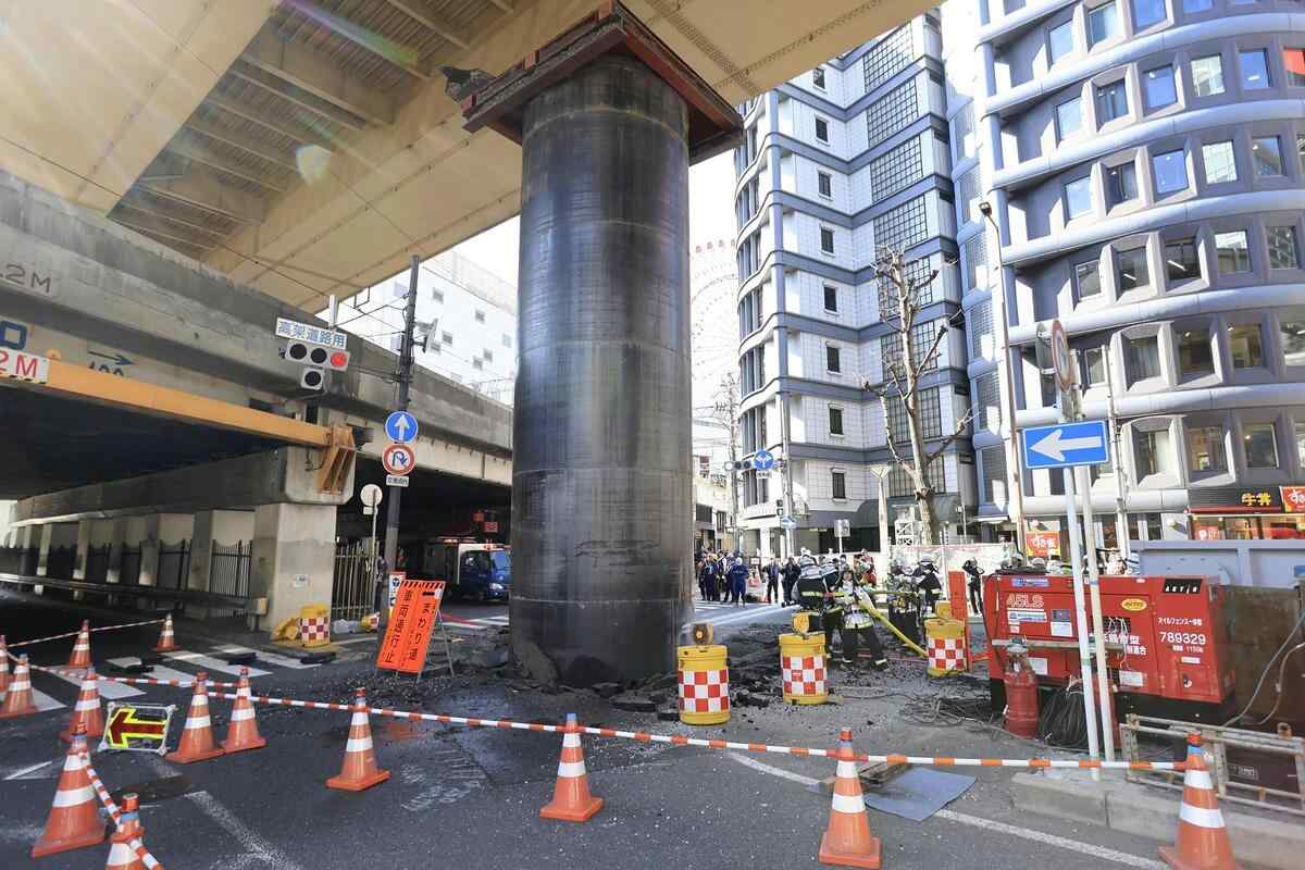 According to the Osaka City office, the pipe is about 30 meters long. At the construction site, workers were installing the vertical pipe to connect an old sewer pipe at a shallow depth with a new sewer pipe, which was to be buried deeper. The problematic pipe was assembled by burying 2.5-meter-long sections of steel pipe. When completed, it reached about 30 meters underground.