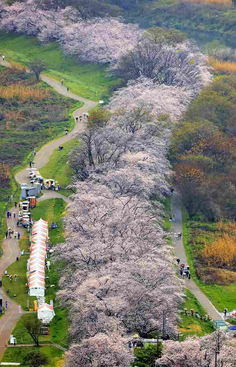 Despite the rainy weather, people went to view the about 220 cherry blossom trees at the dike, which is located between the Uji and Kizu rivers and is one of the most popular cherry blossom viewing spots in the country.