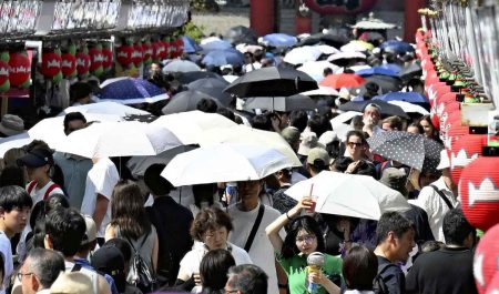 More than 40% of men in Tokyo used parasols this summer, which saw the most days on record when t...