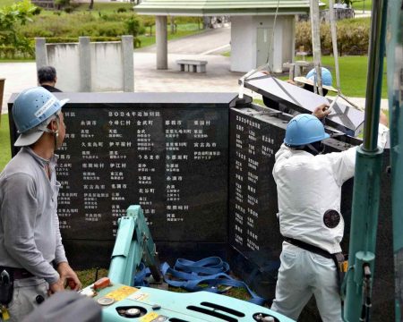 ITOMAN, Okinawa — A new plaque with an additional 342 names of people who died in the Battle of O...