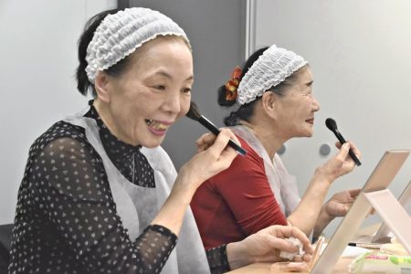 YOKOHAMA — The Yokohama city government and companies are encouraging the elderly to apply makeup...