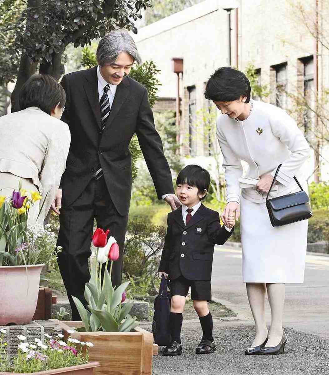 The prince arrives at Ochanomizu University Kindergarten along with his parents in April 2010. -