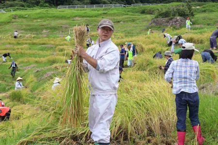 Volunteers Harvest Rice from Terraced Paddies in Wajima; Crop Was Successful Despite Damage from Earthquake, Torrential Rains