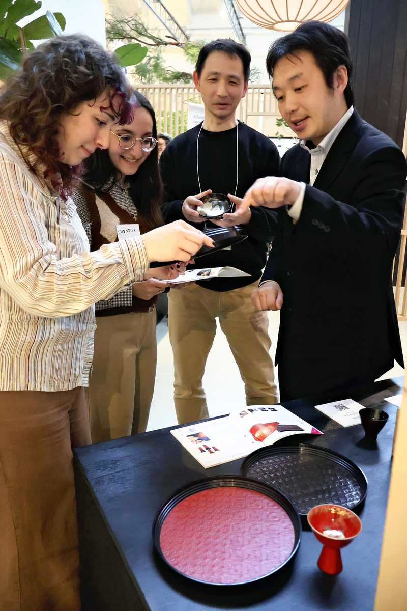 Officials from Wajima, Ishikawa Prefecture, paid a visit in April to Milan Design Week, where they hope to start exhibiting Wajima lacquerware from next year onward. They were encouraged by the potential for expanded international sales of the craft, which was hard hit by the Noto Peninsula Earthquake.