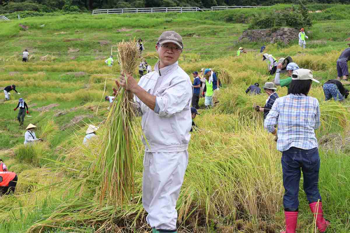 Tomokazu Shirao, 61, a leader of a local group that manages the paddies, said, “Thanks to everyone’s help, we were able to harvest the rice. We’ll keep working to restore the fields to what they were.”