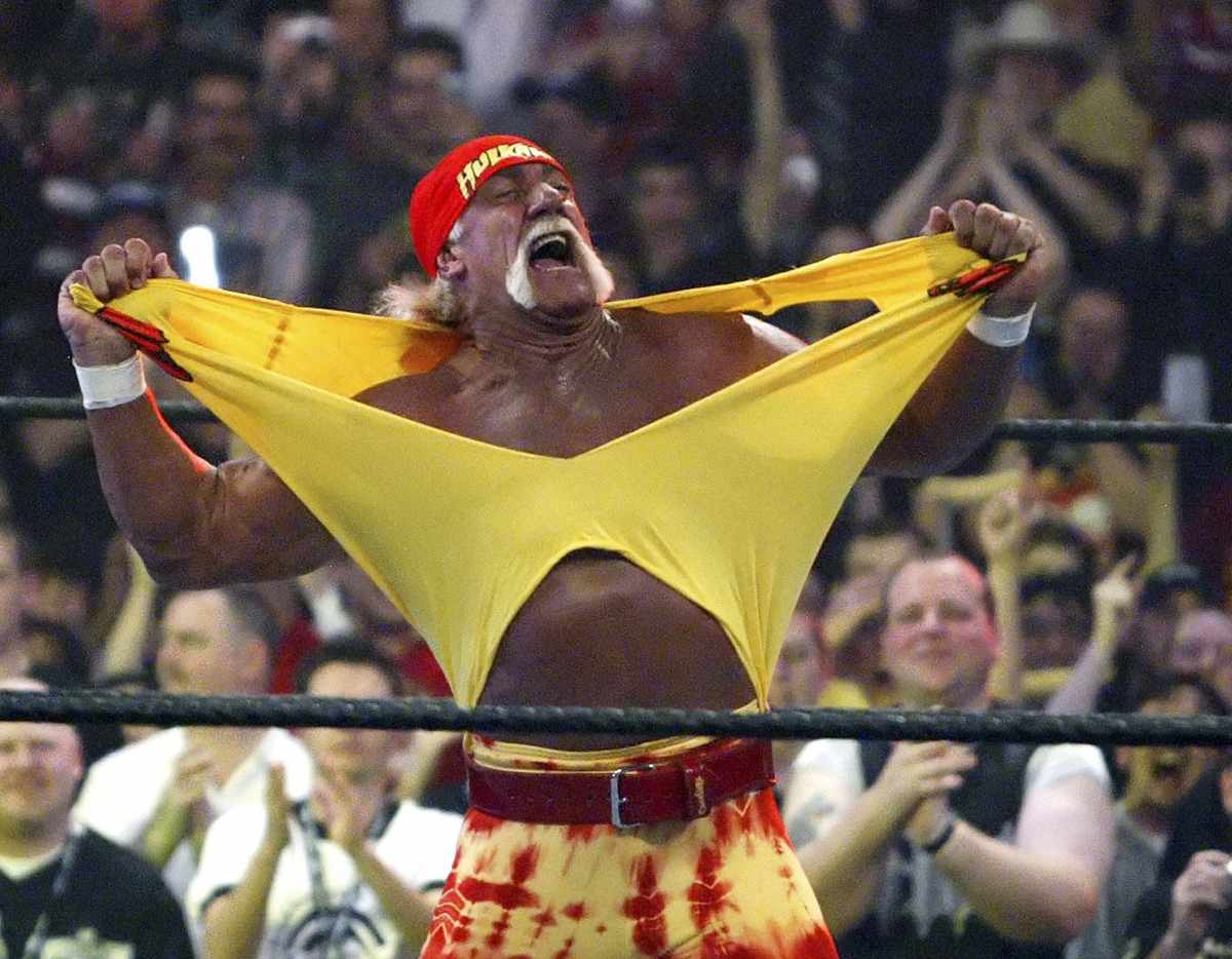 “Hulkamania,” as the energy he created was called, started running wild in the mid-1980s and pushed professional wrestling into the mainstream. He was a flag-waving American hero with the horseshoe mustache, red and yellow gear and massive arms he called his “24-inch pythons.” Crowds were hysterical when he ripped off his T-shirt in the ring — a trademark move — revealing a tan, sculpted body.