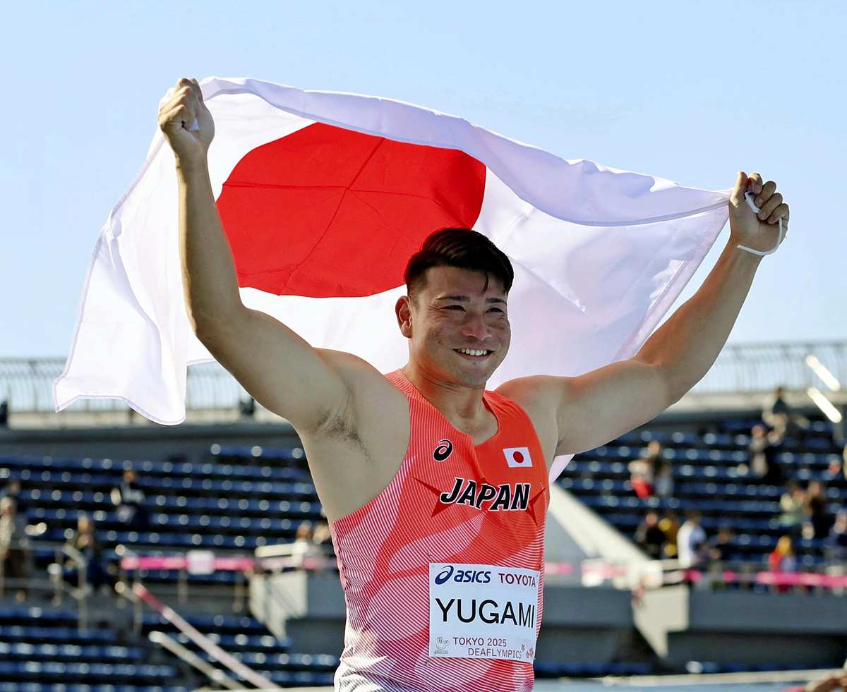 Deaf track and field athlete Masateru Yugami won the gold medal in the men’s discus throw final at the Tokyo 2025 Deaflympics on Monday with a throw that set a new Deaflympics record of 58.93 meters.