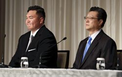 Canon Inc. Chairman and CEO Fujio Mitarai, who chairs a business leaders’ group that supports the Giants, was also there.