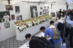 Nagashima’s body left his home in Tokyo for the funeral home on Saturday afternoon. On its way, the hearse carrying Nagashima drove by Tokyo Dome, the home stadium of the Giants. On Saturday, 126 people attended a wake for Nagashima, including current Giants manager Shinnosuke Abe.