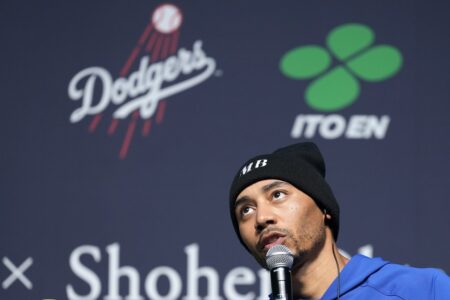 LOS ANGELES — Los Angeles Dodgers Pitcher Roki Sasaki pledged Wednesday to “move forward” on beha...