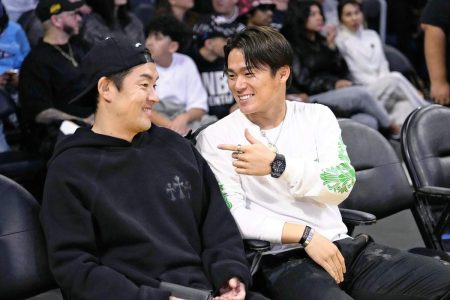 LOS ANGELES — Los Angeles Dodgers hurler Yoshinobu Yamamoto attended Monday’s NBA game between t...