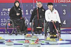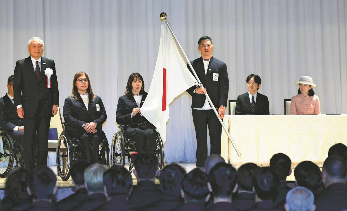 About 40 para athletes, including ice hockey players and Alpine skiers, participated in the ceremony, during which Kazuyuki Mori, president of the Japanese Paralympic Committee, handed the team’s flag to Japan’s two flagbearers, snowboarder Junta Kosuda and mixed doubles wheelchair curler Aki Ogawa, via Kuniko Obinata, the leader of the team.