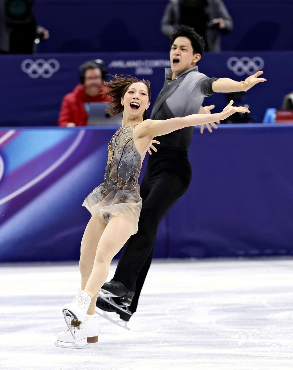 MILAN — Riku Miura and Ryuichi Kihara on Monday made a stunning comeback from their disappointing short program performance, winning gold in pairs figure skating in Milan. It was Japan’s first Olympic title in the category.
