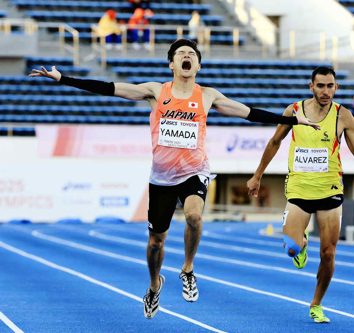 Maki Yamada wins the gold medal in the men’s 400 meters at the Tokyo Deaflympics on Wednesday.