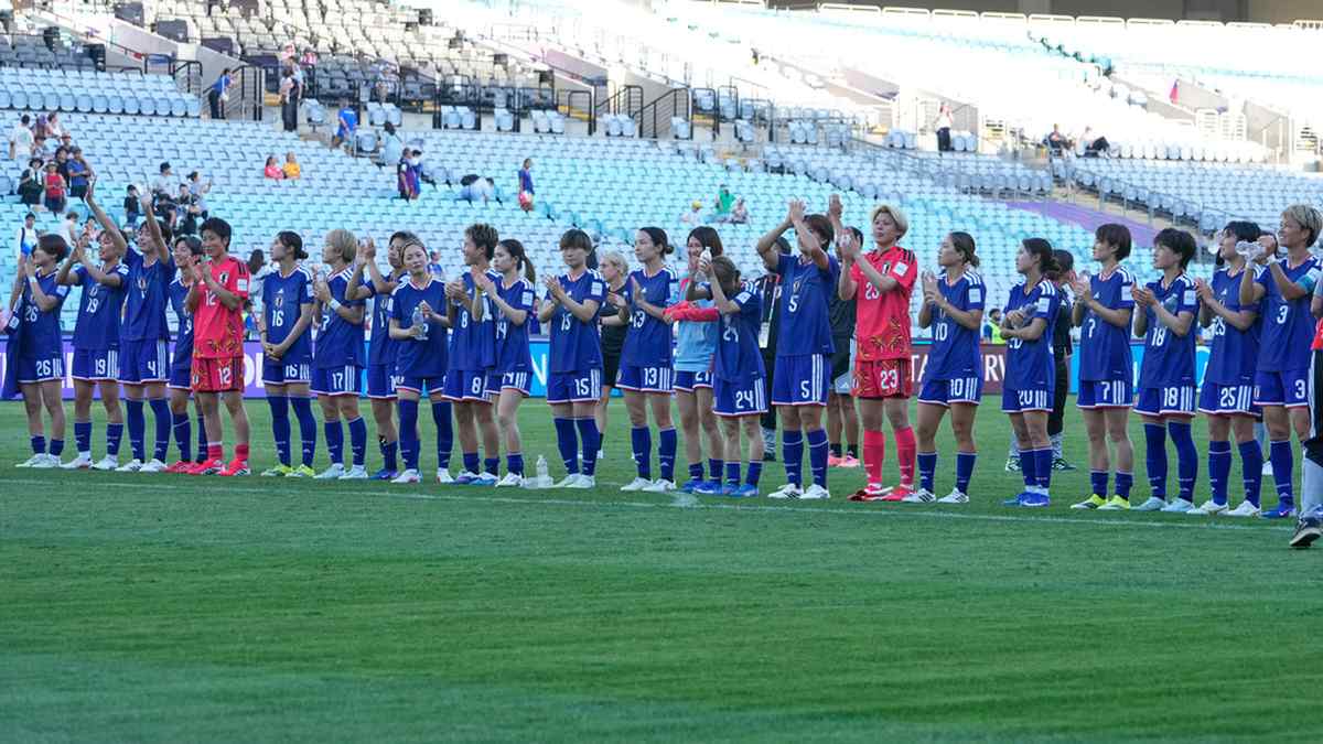 Japan players gesture to their supporters following the Women’s Asian Cup quarterfinal soccer match between Japan and the Philippines in Sydney on Sunday.