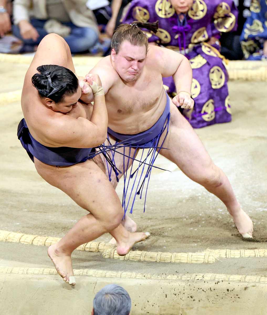 In the day’s final bout, Aonishiki came out charging hard and never looked back as he bulled Hoshoryu out of the ring — the Ukranian’s third win in three meetings between the two.