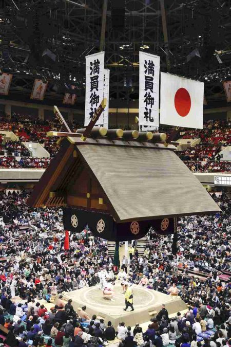 Historically, the January tournament was called the “Spring Tournament,” because “shin shun,” one of the terms meaning New Year, carries the kanji characters meaning new spring. However, starting in 1953, when the March tournament began in Osaka, the association started calling the January tournament the “New Year Tournament” and the March tournament the “Spring Tournament,” establishing the four-tournament system per year alongside the summer and autumn tournaments.