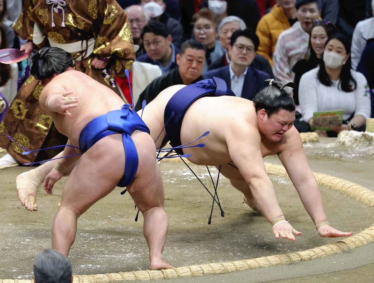 Aonishiki, looking for a third straight title that will propel him to yokozuna, lost to No. 2 maegashira Churanoumi to drop to 2-2.