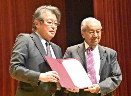FUKUOKA — Former Malaysian Prime Minister Mahathir Mohamad has received an honorary doctorate fro...