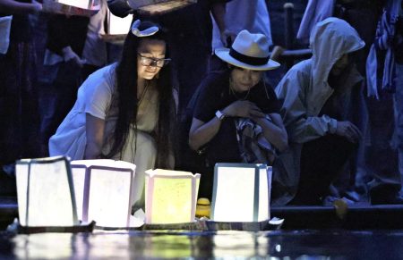 Lanterns for the repose of souls were floated Monday on the river flowing at the foot of a ridge ...