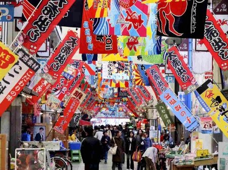 Japan In FocusHyogo: Colorful Fishermen’s Flags Decorate Akashi Shopping Arcade
