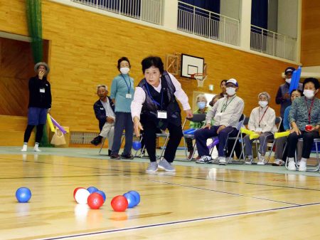 NOTO, Ishikawa — A boccia tournament was held at Yanagida Elementary School in Noto, Ishikawa Pre...