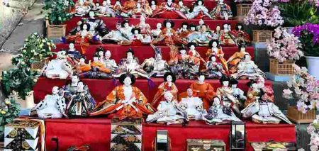 A thousand hina dolls lined the 77 stone steps leading to the main shrine hall at Zama Shrine in ...
