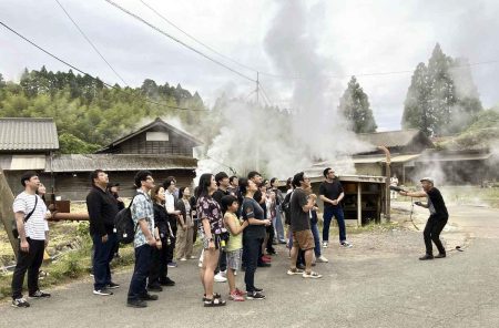 OGUNI, Kumamoto — A shark-attack movie was filmed on the steam-filled streets of hot spring resor...